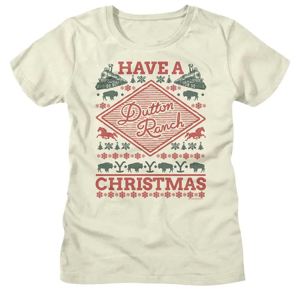 Yellowstone Dutton Ranch Christmas-Vintage White Ladies S/S Tshirt