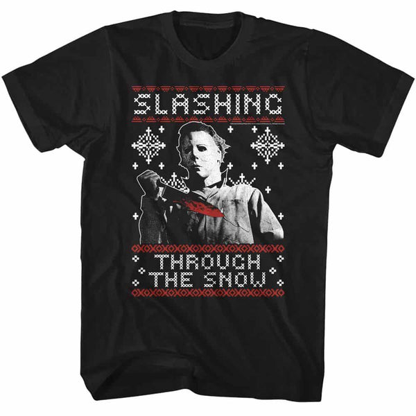 Halloween Slashing Thru The Snow-Black Adult S/S Tshirt